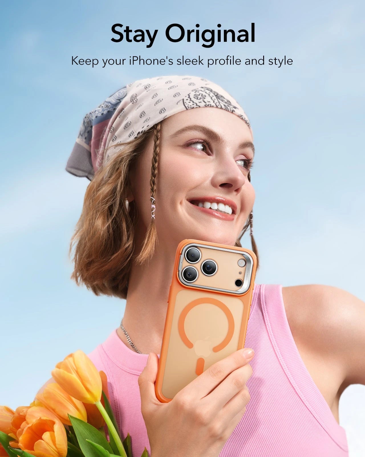 ESR Classic Hybrid Stash Stand Case with Camera Control Button for iPhone 17 Series- Frosted Orange