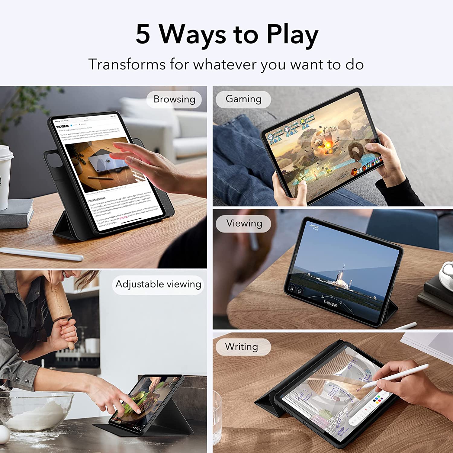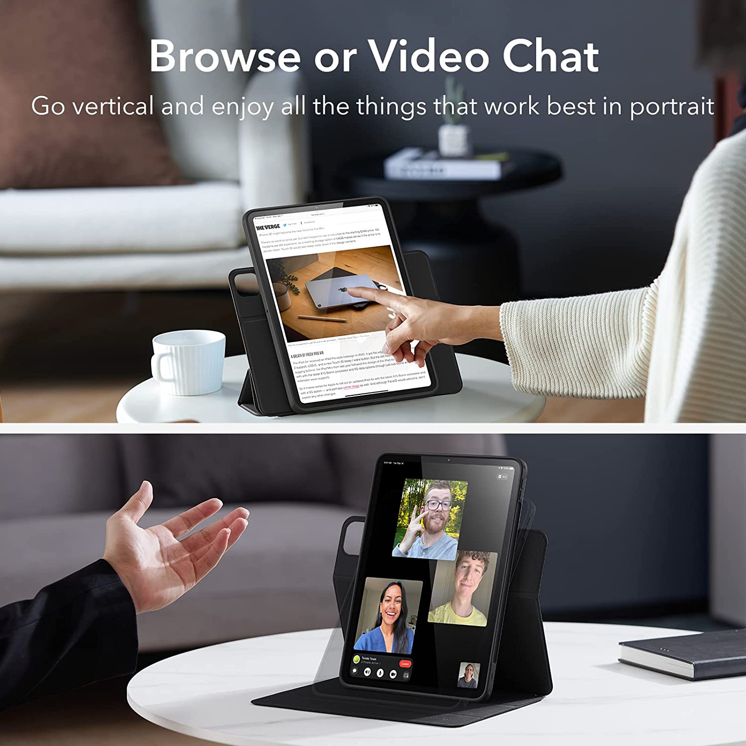- Versatile Stand: easily shift from portrait view for FaceTiming to landscape view for watching videos and browsing, plus achieve the perfect angle when you want to type or draw